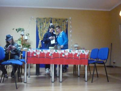 Na koniec wszyscy, dzieląc się opłatkiem, złożyli sobie świąteczne życzenia, , a Mikołaj obdarował zgromadzonych cukierkami.