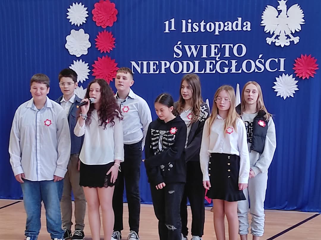 Pieśni dla NIEPODLEGŁEJ zaśpiewali dzisiaj uczniowie wszystkich klas, świętując NARODOWE ŚWIĘTO NIEPODLEGŁOŚCI.