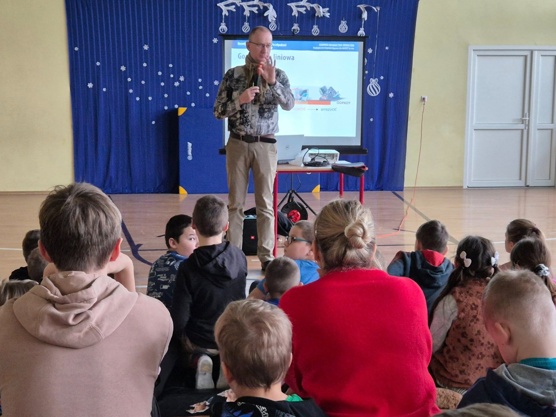 Dziś mieliśmy przyjemność gościć przedstawiciela przedsiębiorstwa Eko Mazury, który opowiedział nam o ochronie środowiska i zasadach prawidłowej segregacji odpadów.