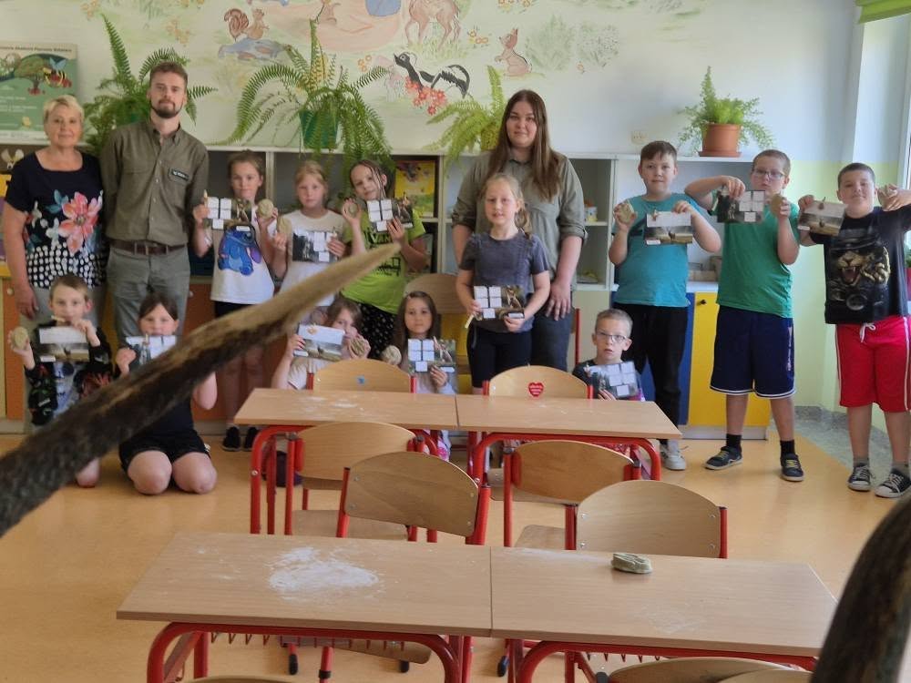 Każdy uczestnik wrócił do domu z prezentem – własnoręcznie wykonanym odlewem tropów wilka, lisa, borsuka i innych leśnych mieszkańców!
