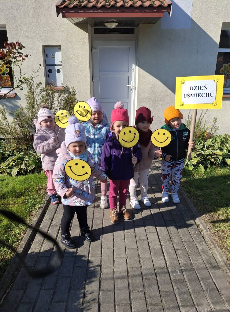 Dzień Uśmiechu. Przedszkolaki częstują uśmiechem.