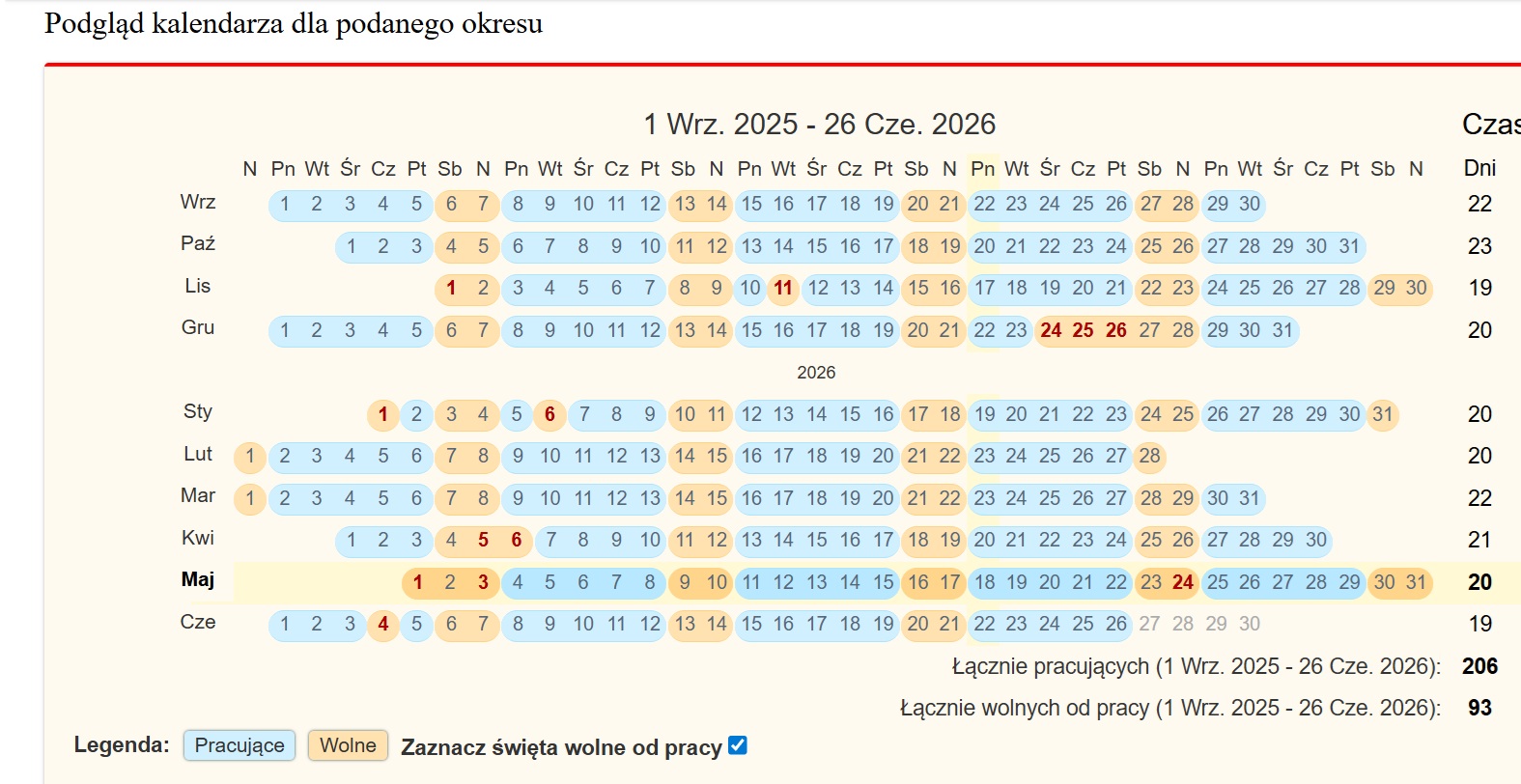 Dni wolne od zajęć w roku szkolnym 2025/26
