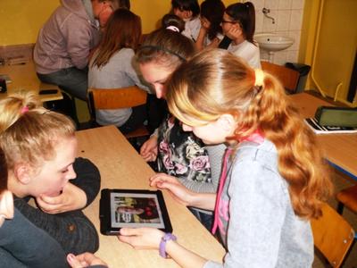 Pani Beata, w ramach projektu : „TABLETY W BIBLIOTECE”, zorganizowanego przez Fundację Rozwoju Społeczeństwa Informacyjnego, zaprezentowała młodzieży ciekawe aplikacje edukacyjne 4D do wykorzystania w pracy z tabletem. Możliwości zastosowania współczesnej technologii informacyjnej są ogromne. Można tworzyć własne filmy, komponować samodzielnie muzykę, uczyć się oraz bawić. Zajęcia z tabletami cieszyły się dużym zainteresowaniem wśród uczniów.