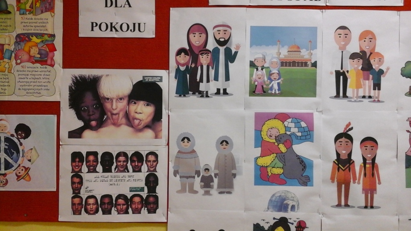 Wszyscy różni- wspólne wartości, Kultura Nolbele- miał na celu pokazanie, że rówieśnicy w innych krajach mają podobne zabawy do naszych maluchów oraz podobne rzeczy są dla nich ważne. Przedszkolakom podobała się muzyka afrykańska, przy której tańczyły, nauczyły się zabawy Simama- ka, zdobiły domki z papieru wg własnego pomysłu. Dzieci rozmawiały o szacunku dla innych ludzi różniących się wyglądem, mówiących różnymi językami . W sali wyeksponowano kącik globalny. Na korytarzu szkolnym została umieszczona gazetka o dzieciach z innych krajów z hasłem: „Razem Dla Pokoju”