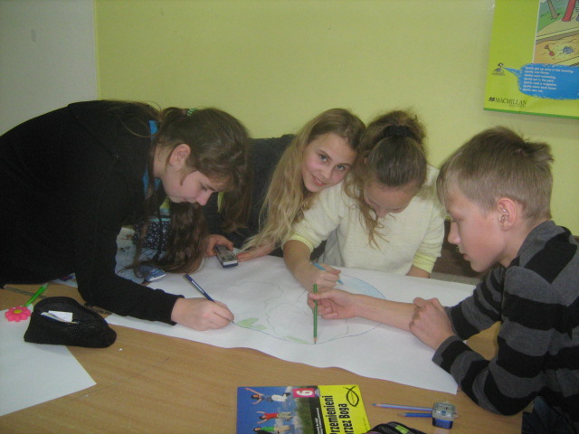 Pracowaliśmy w grupach, a każdy uczeń reprezentował dziecko z innego kraju świata.