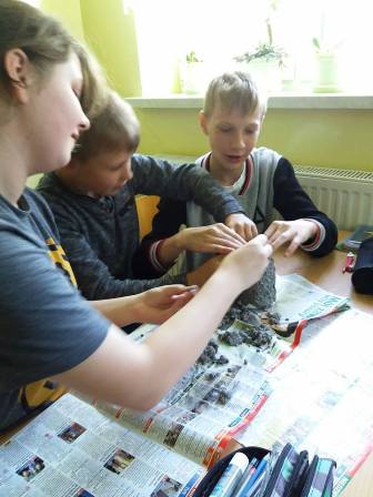 Na koniec każdy wykonał przybornik na biurko z surowców wtórnych nadając „drugie życie śmieciuszkowi”.