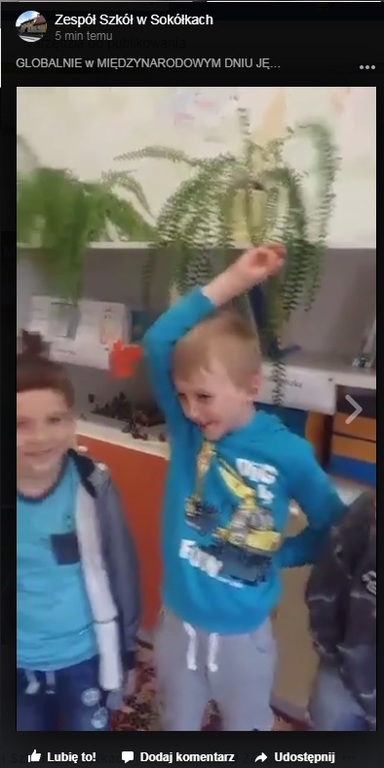 Natomiast najmłodsi uczniowie naszej szkoły nauczyli powitania w 10 różnych językach świata.