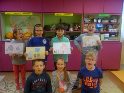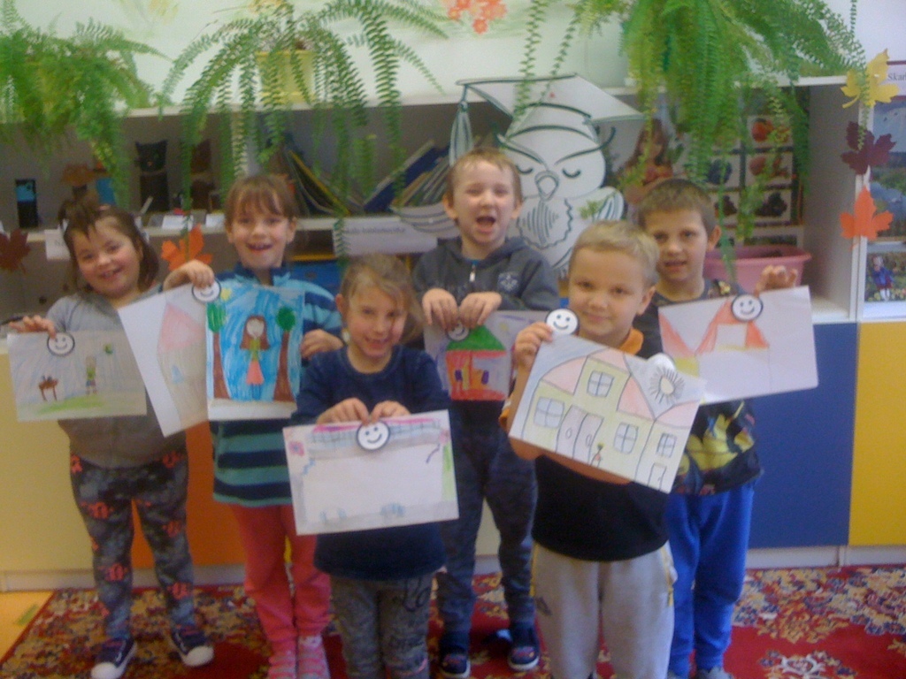 Na koniec zajęć uczniowie wykonali prace plastyczne ukazujące marzenia Alii i uwieńczyliśmy nasze dzieła wspólnym zdjęciem z buźką dla Alii i jej kolegów.