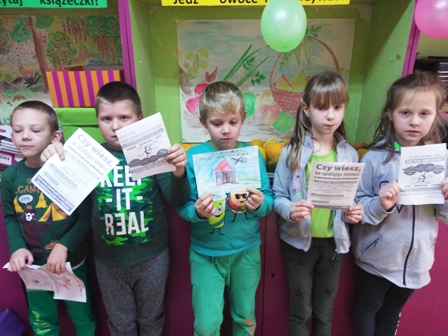 Przygotowanie ulotek na temat szkodliwości palenia śmieci w piecach domowych i rozdanie ich rodzicom i mieszkańcom pobliskich miejscowości.