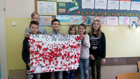 Uczniowie klas V, VI i II gimnazjum wykonali sto kwiatów z papieru, aby uczcić setną rocznicę Niepodległości Polski.