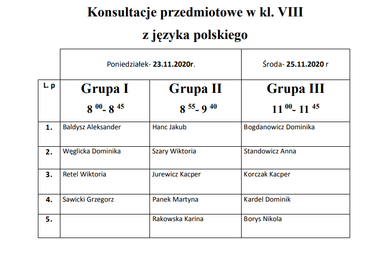 Konsultacje przedmiotowe w kl. VIII z języka polskiego