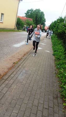 W dniu 7 czerwca grupa projektowa zrealizowała projekt "Opowiemy wam historię...". Dziewczęta w składzie Magdalena Danielewicz, Magdalena Lisowska, Julita Nowakowska i Martyna Rogacka wymyśliły grę terenową po naszej miejscowości. Do udziału w grze zgłosiło się aż 17 drużyn 2-osobowych. Uczestnicy rajdu musieli początkowo zmierzyć się z niesprzyjającą pogodą... deszcz. Każda grupa otrzymywała na starcie kopertę z rymowanką, która wskazywała miejsce następnej poszlaki. Uczniowie odwiedzili naszą skocznię w poszukiwaniu jajka z kinder niespodzianki, kuchnię, bibliotekę,sklep, a nawet strych w naszej szkole. Najszybsza drużyna pokonała całą trasę w 16 minut. Gratulujemy Bartoszowi Wargala i Dominikowi Stemplewskiemu!!!