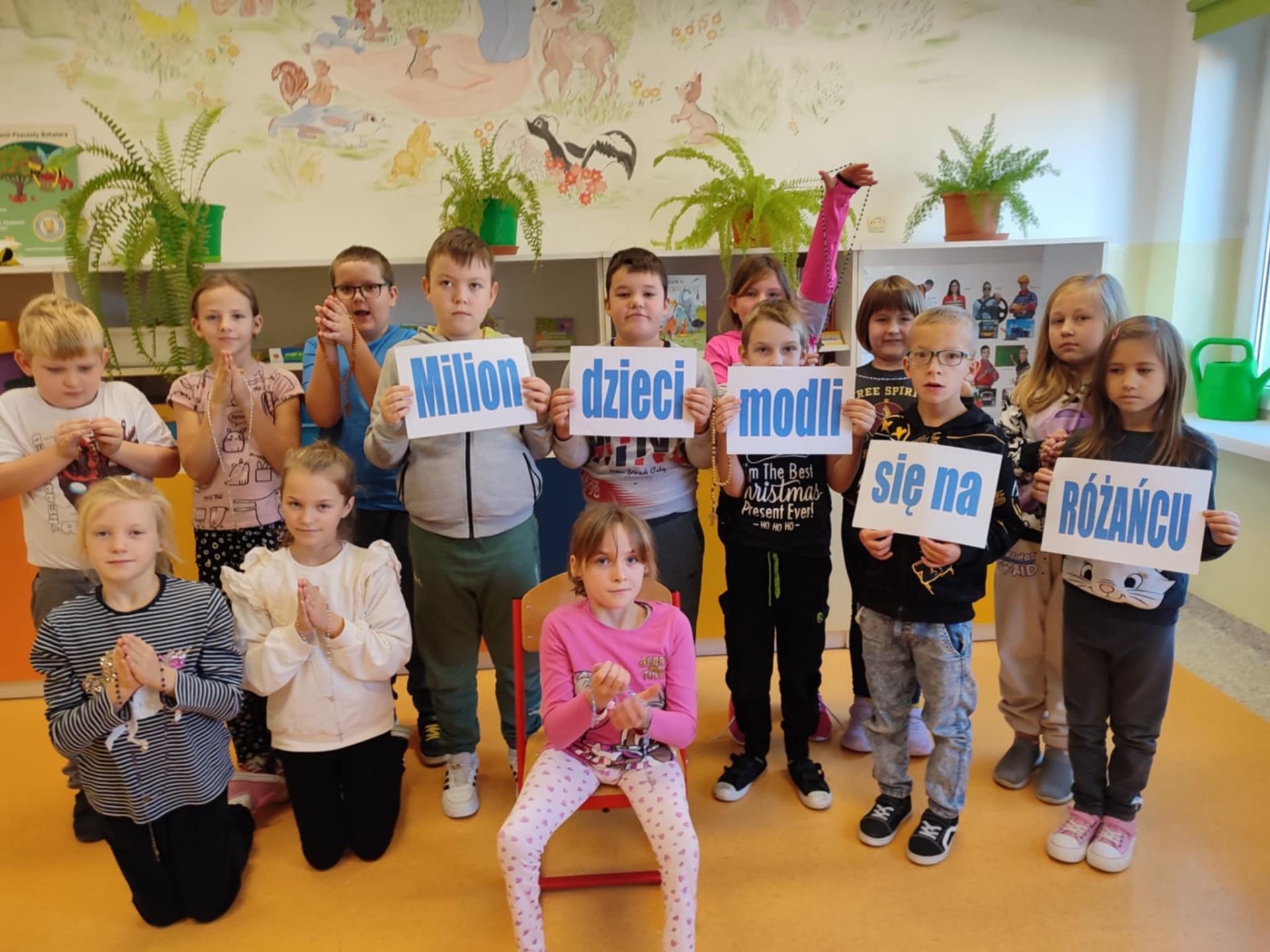 18.10.2024 r. uczniowie naszej szkoły dołączyli do międzynarodowej kampanii organizowanej przez Papieskie Stowarzyszenie Pomoc Kościołowi w potrzebie- Milion dzieci modli się na różańcu. O godz. 9.00 zebraliśmy się, by połączyć się z dziećmi całego świata w modlitwie różańcowej, prosząc o pokój na świecie. Cel tej akcji to przywrócenie wiary w moc modlitwy. Poprzez różaniec dzieci całego świata duchowo otaczają cały świat.